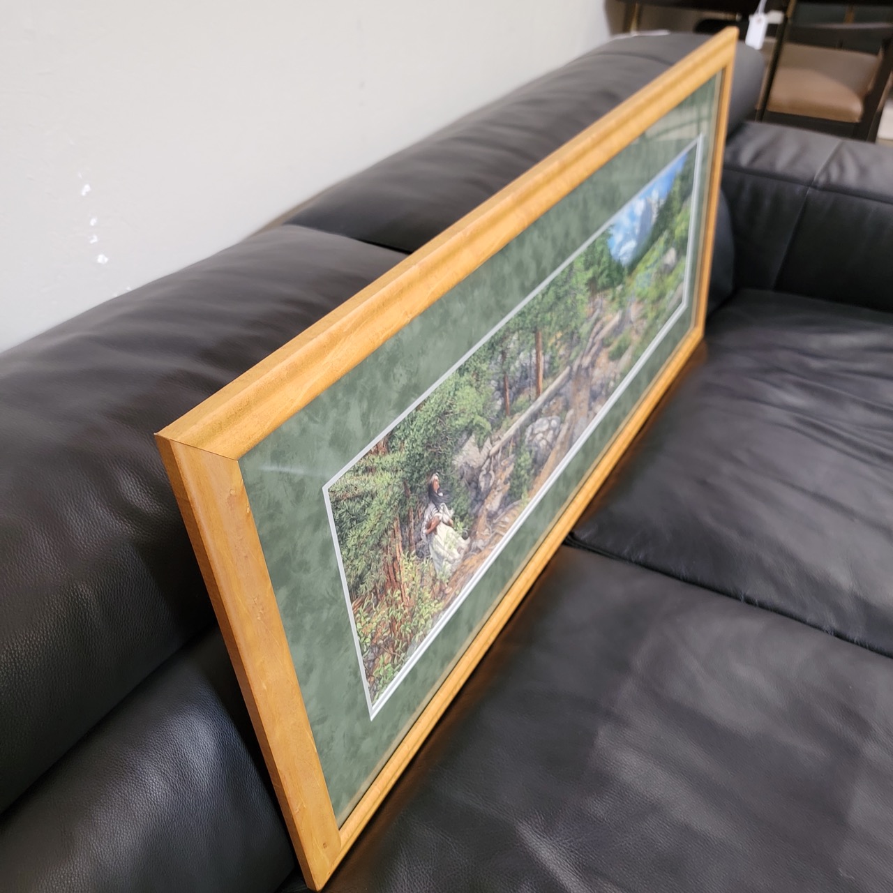 Works well above a sofa, hallway run, or long wall where standard proportions fall short. Framed with Tru Vue conservation glass for protection. Presents very clean.