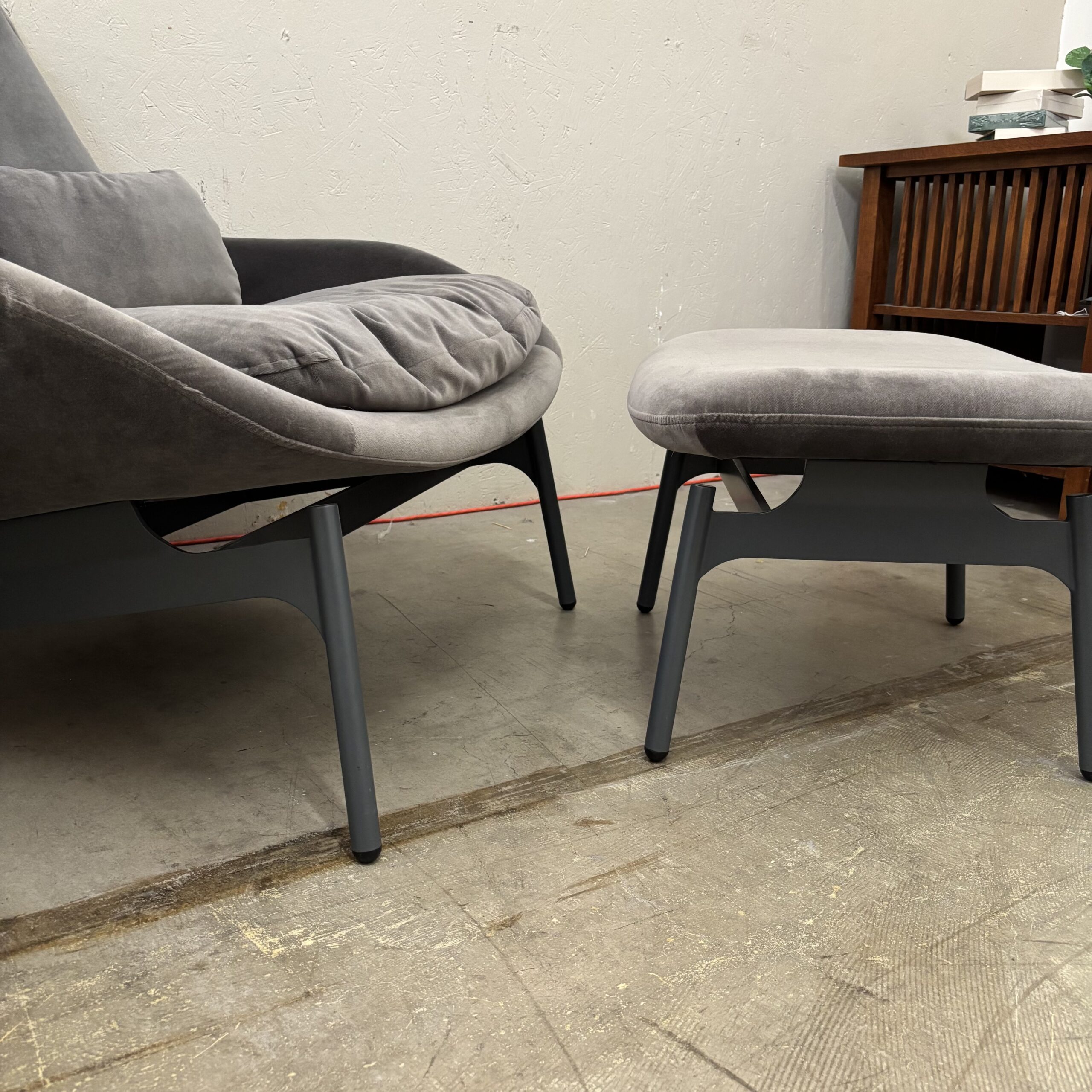 The Blu Dot Field Lounge Chair is a modern classic, combining smooth sculptural curves with plush feather-down–wrapped cushions and a supportive angled recline. Designed in 2015, it offers both style and comfort with its steel base, bent plywood frame, and tailored fabric upholstery.