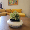 Add a touch of timeless style to your décor with this saucer-style ceramic planter, crafted with a low, wide profile and a durable metal interior liner. The crackle glaze finish and classic blue vine pattern evoke traditional ceramic artistry, while the modern round silhouette keeps it versatile and easy to style.