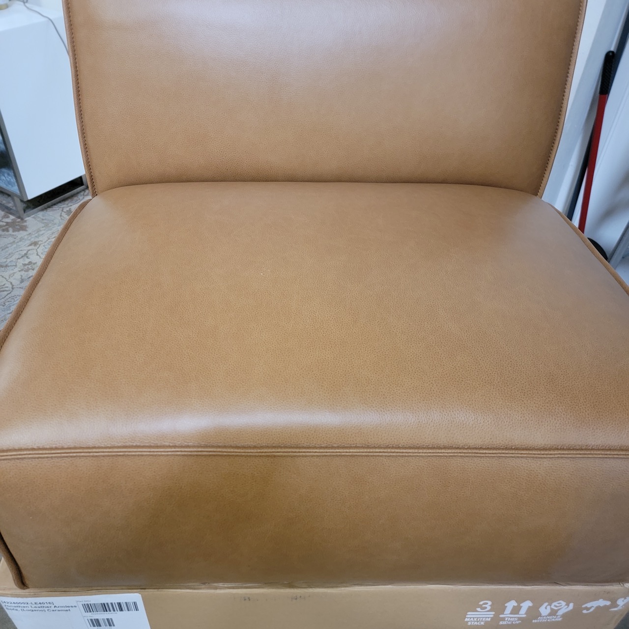 Meet the easy add-on or stand-alone lounge piece that fits almost any room. The Jonathan leather armless seat gives you a deep, low profile sit in a warm caramel top-grain look. Use it as a modern accent chair or snap it into a modular sectional plan. The frame reads clean and tailored, the seat is generous, and the armless shape slides into tight layouts and doorways.