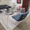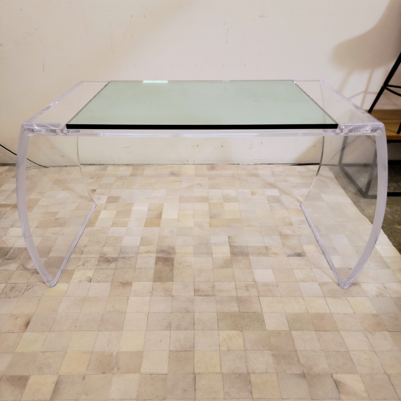This one almost disappears in the right way. The clear acrylic frame keeps the footprint light, while the inset glass top gives it just enough definition and contrast.