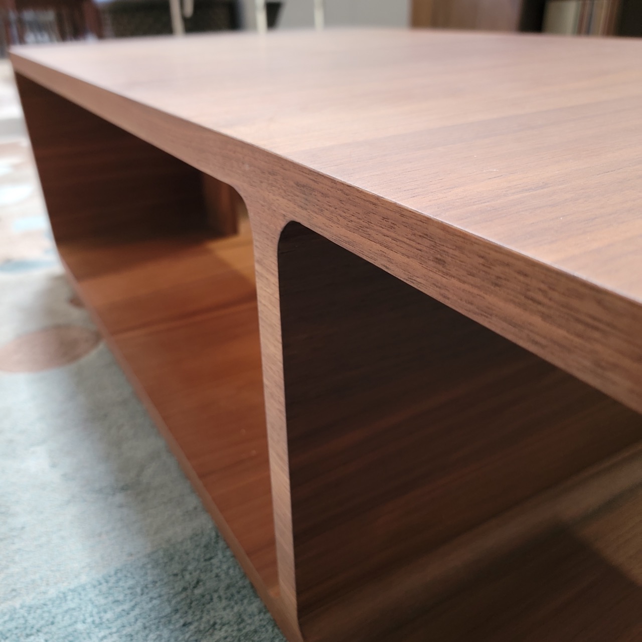 Clean lines and warm walnut grain give this coffee table a streamlined, modern presence that works easily in a variety of interiors.