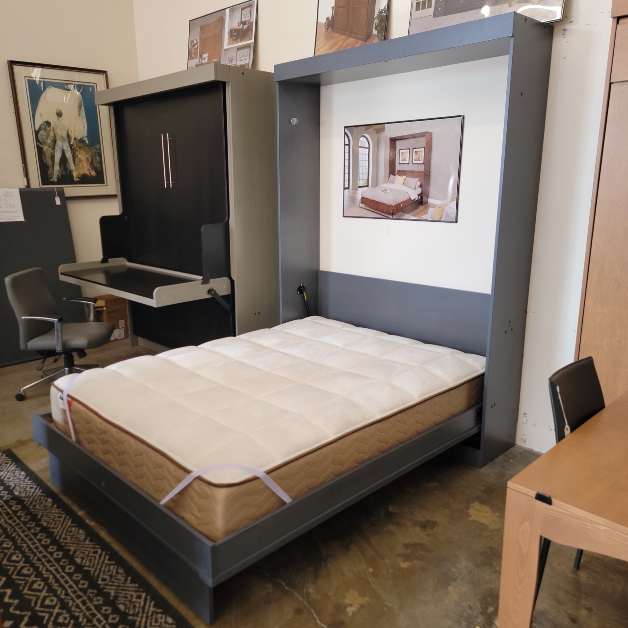 Ideal for guest rooms, home offices, multi-use spaces, and ADUs where both style and function matter. The Dublin line is known for its durability, smooth operation, and design flexibility with a wide range of matching pier cabinets, desks, and storage options. This model’s darker Bark Gray finish complements modern, transitional, and coastal interiors, and provides a clean, elevated look compared to traditional Murphy bed cabinetry.