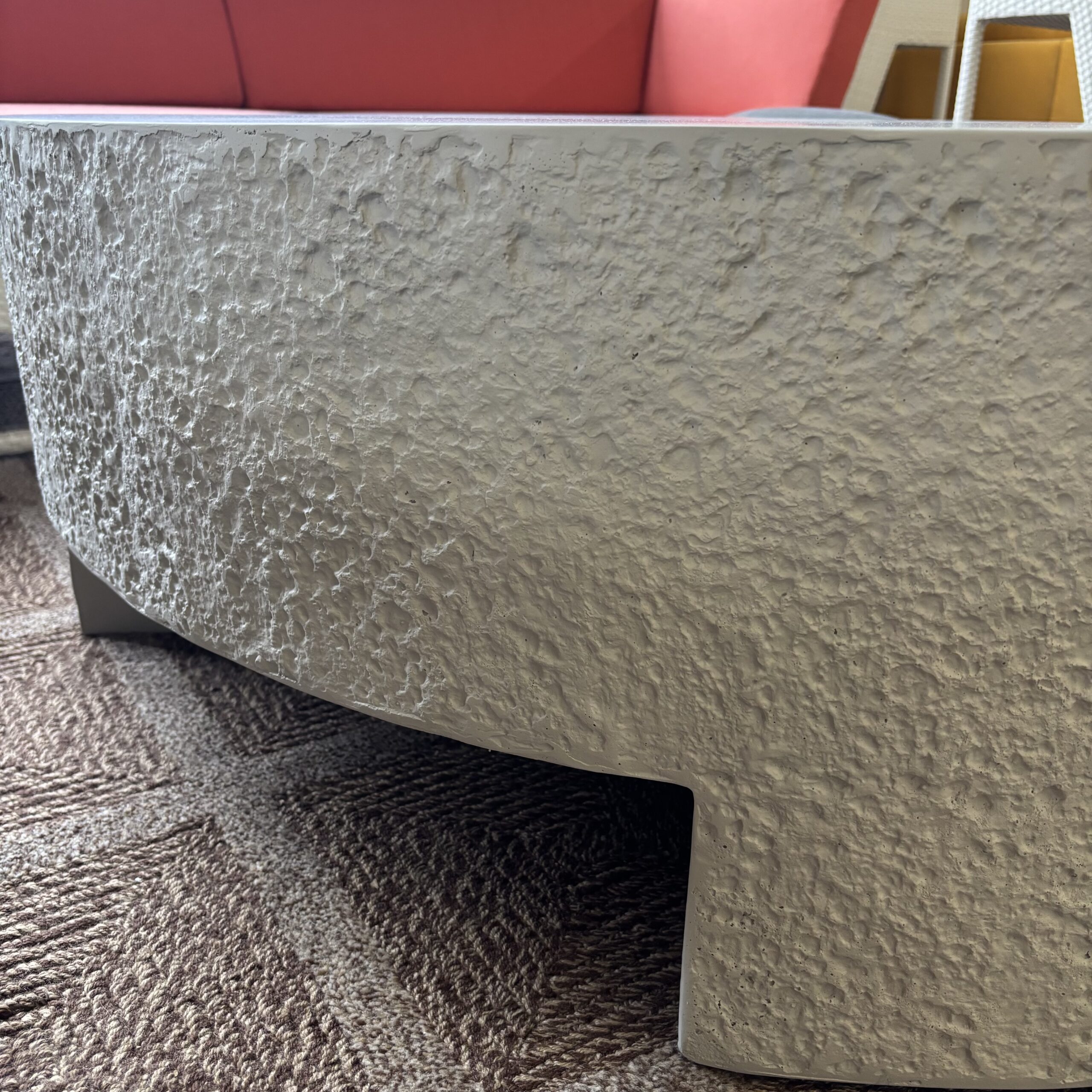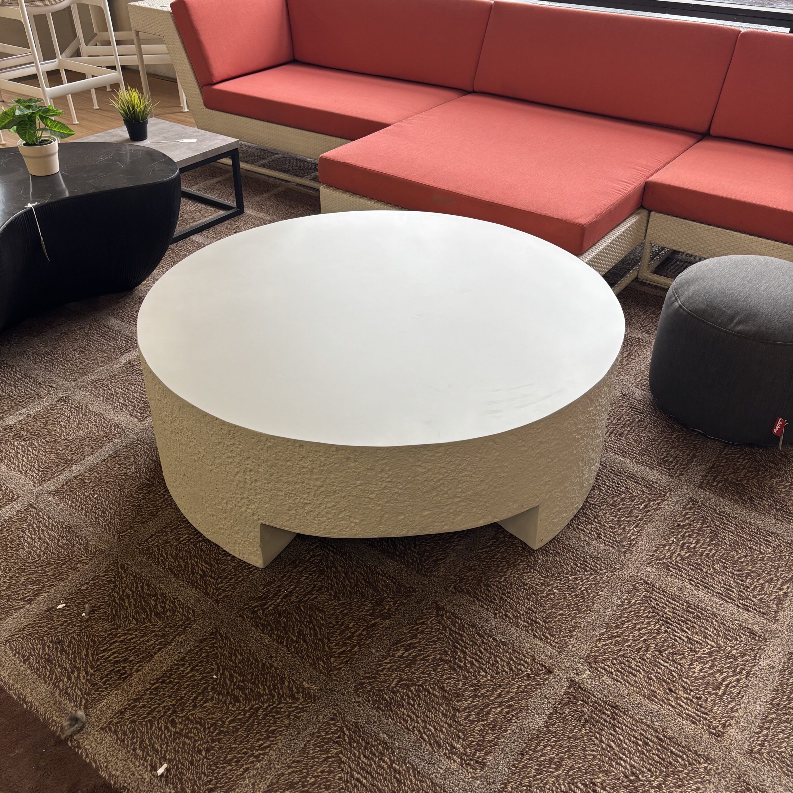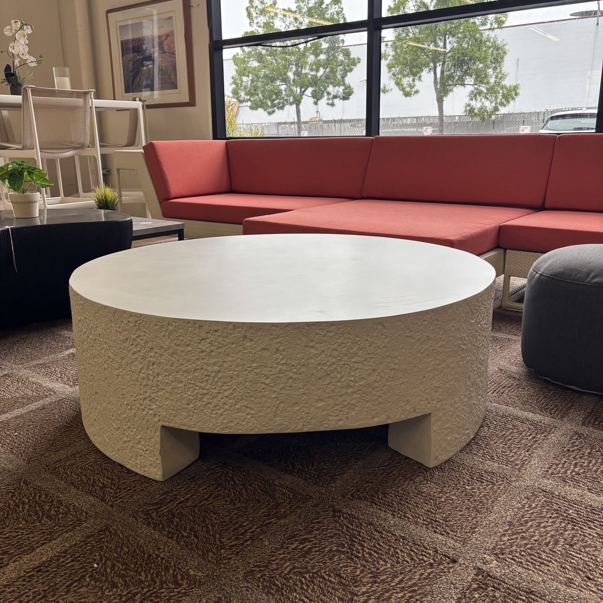 This low, sculptural coffee table brings a refined, architectural presence to outdoor settings. The matte stone finish gives the piece a hand-formed, organic look while maintaining a modern silhouette that pairs easily with woven, teak, aluminum, or upholstered outdoor collections. Its weight and shape create a stable anchor point for lounge layouts, while the softly rounded edges keep the profile approachable and versatile. A strong choice for patios, decks, or covered spaces where texture and simplicity matter.