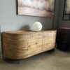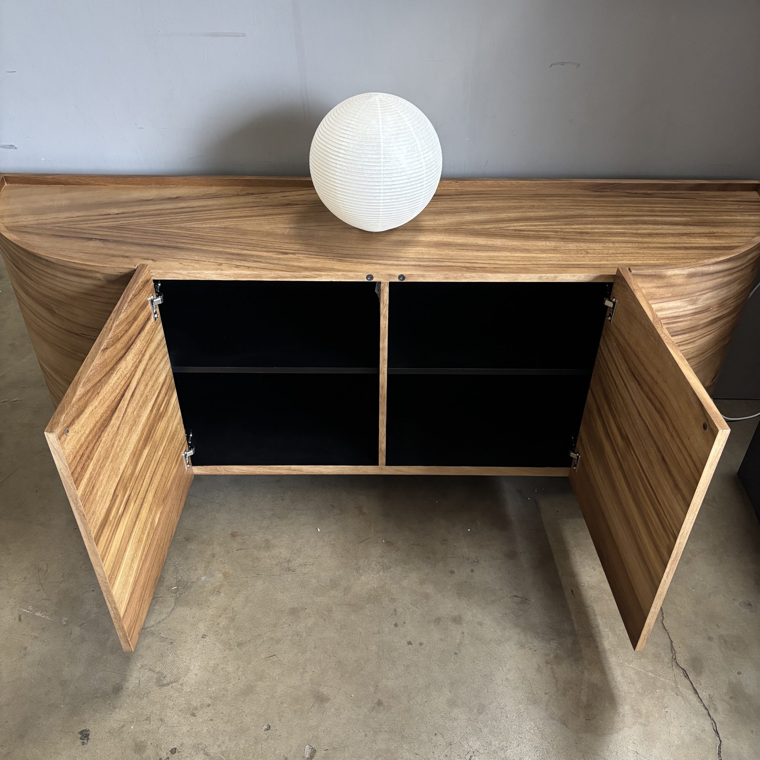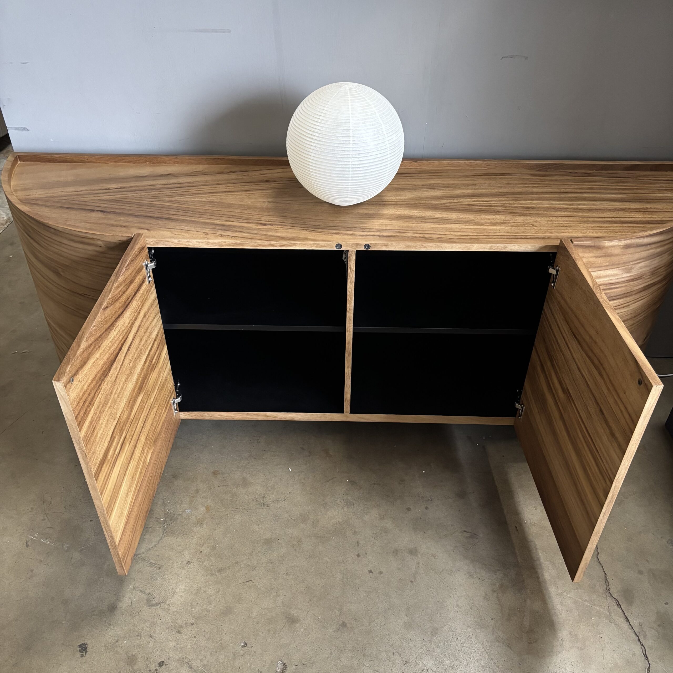 Crafted in a warm caramel-toned guanacaste veneer, this sideboard combines sculptural wood movement with clean-lined modern design. The natural grain variation becomes the visual highlight, giving the piece an elevated, gallery-level presence. Inside, generous storage helps keep dining or living areas streamlined, while the exterior maintains a calm, minimalist stance. Works seamlessly in contemporary, coastal, Scandinavian, and warm-modern interiors where natural texture plays a central role.