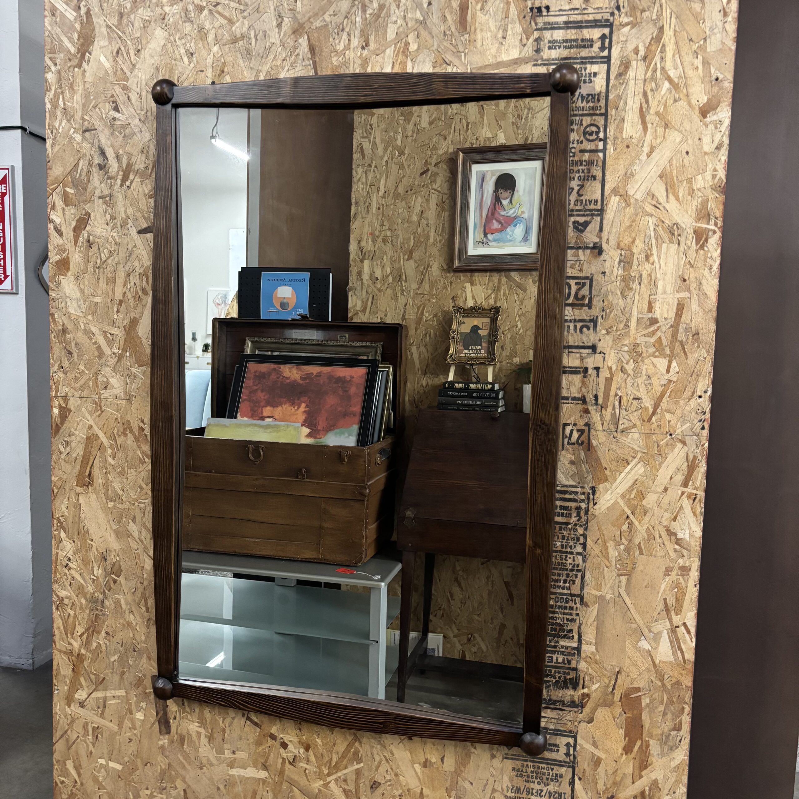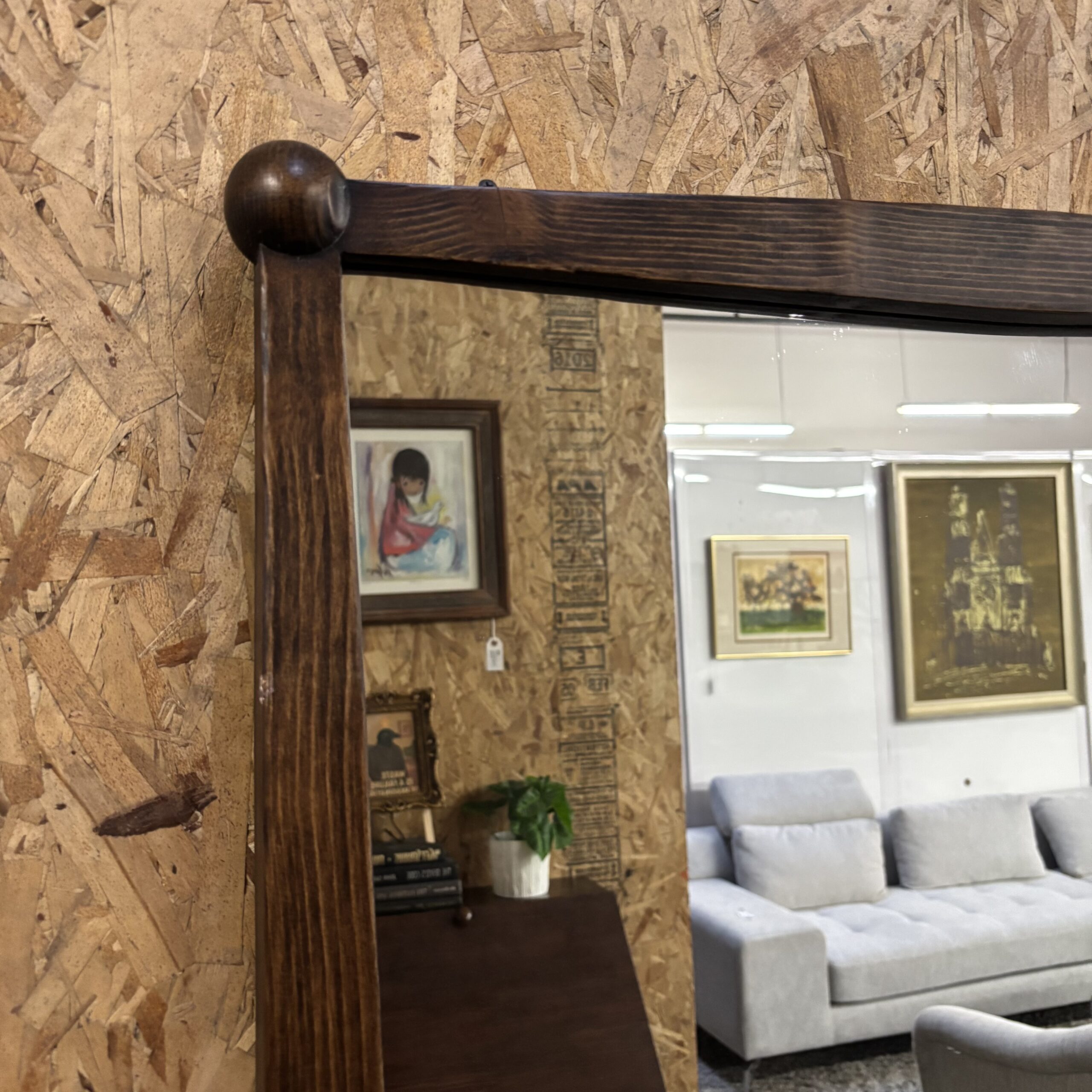 A refined 29” x 45” wall mirror featuring a walnut-toned wood frame with sculpted rounded-corner detailing. Clean, understated, and versatile, this mirror complements mid-century, Scandinavian, or modern interiors with ease. Perfect above a console, dresser, or entryway for adding depth and light. The generous vertical scale enhances architectural rhythm without overwhelming.