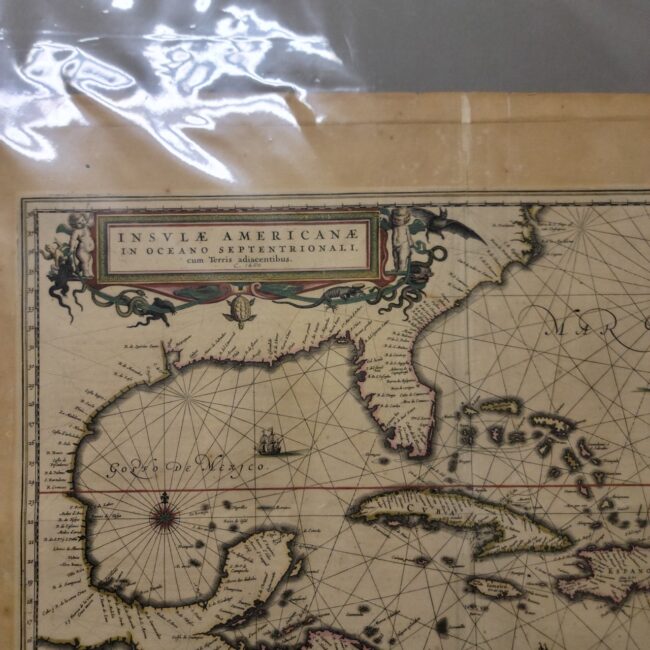 The surface shows expected age-appropriate wear, toning, and patina, particularly along the equatorial band and at points of handling, which reinforces its authenticity rather than detracting from it. Place names, currents, and continental outlines remain legible, making it suitable for display rather than reference use.