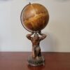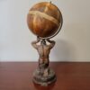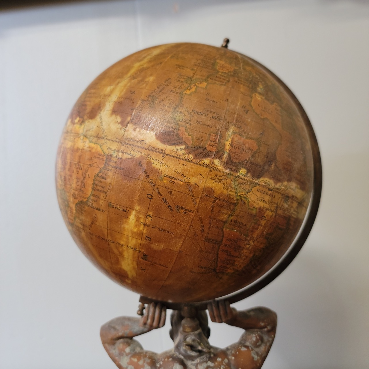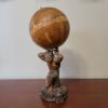 Materials: Printed globe surface, metal meridian, cast metal Atlas figure base