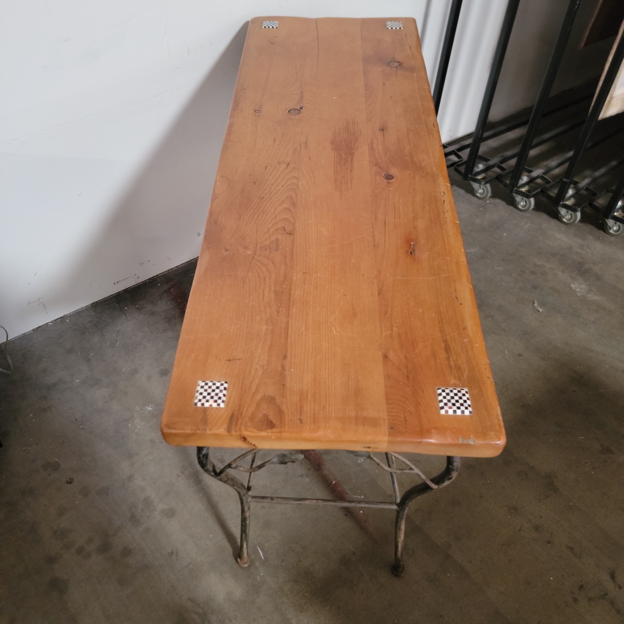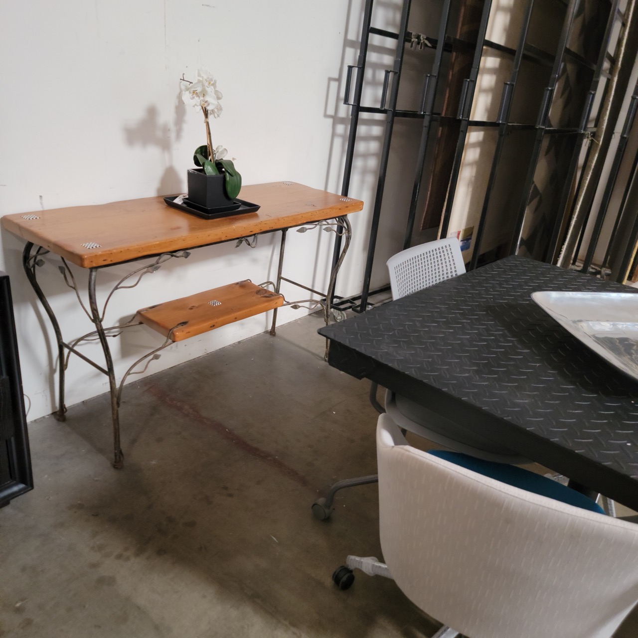 This entry table presents as a quiet, grounded piece, warm reclaimed wood resting on a hand-forged iron base that feels both structural and decorative.