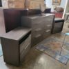 This set lands quiet and modern, charcoal-toned wood, clean lines, and hardware that reads crisp without going flashy. The dresser gives you real storage without feeling bulky, and the matching nightstands keep the bedside practical with an open cubby for books, chargers, or a basket, plus two drawers for everything you want hidden.