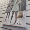 Paint is applied in layered washes and expressive strokes, allowing texture and canvas weave to remain visible. The restrained palette of charcoal, soft whites, muted blush, and pale green gives the piece a grounded, contemplative presence without becoming heavy.