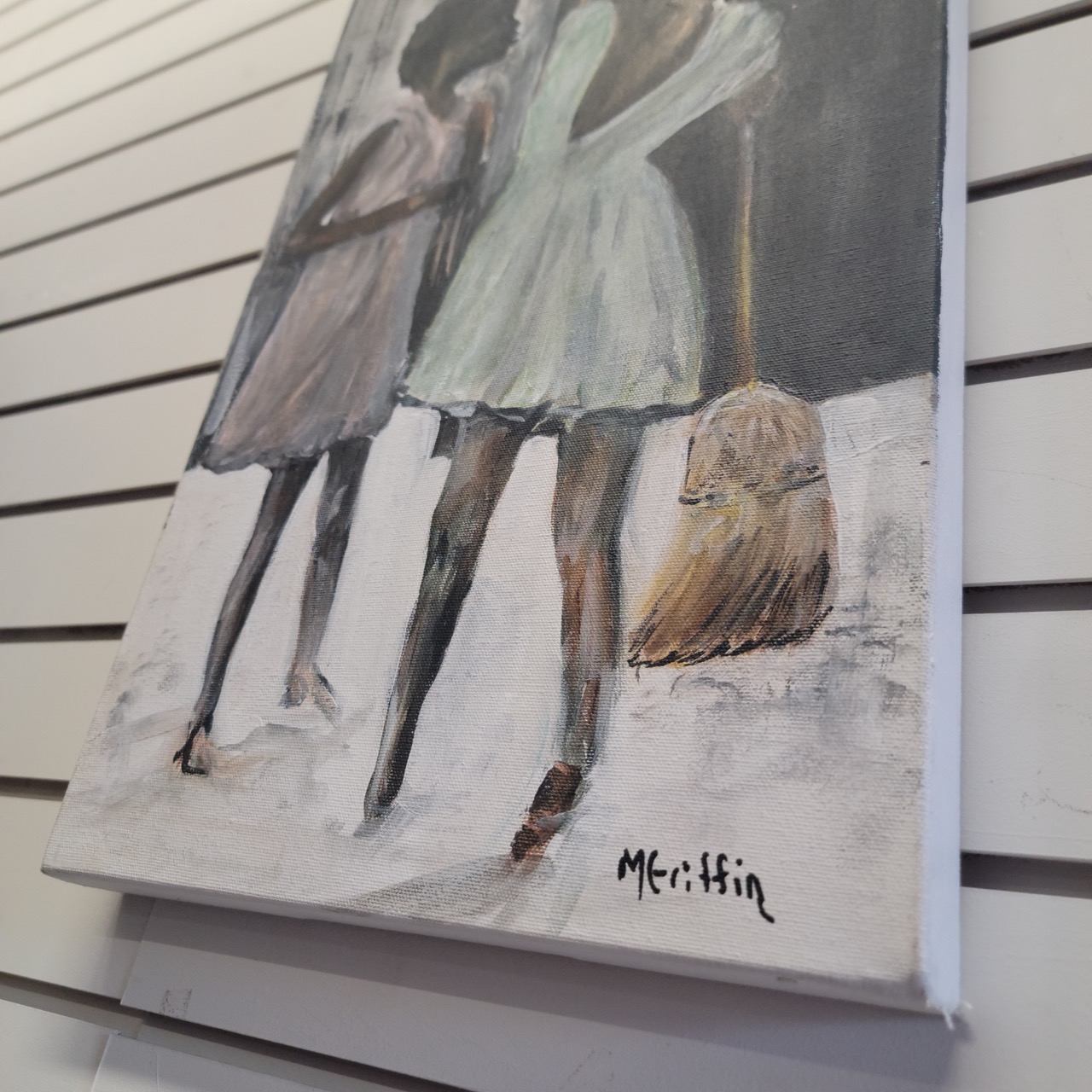 “Legacy” is an original acrylic painting that captures an intimate, transitional moment between two figures, rendered with loose brushwork and softened edges that favor feeling over precision. The composition draws the eye upward through contrast and negative space, creating a natural sense of movement and connection.