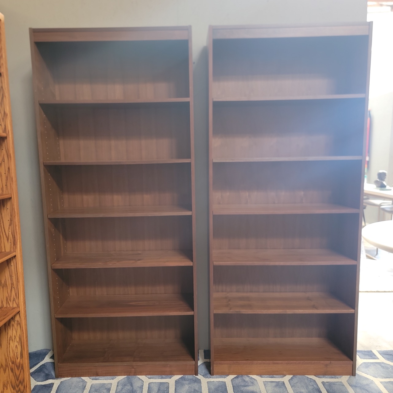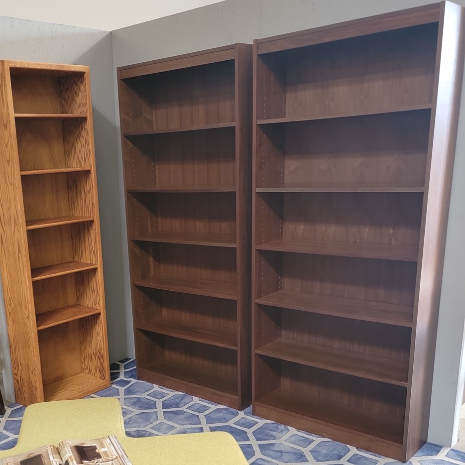 Used together, they make a strong library wall, office storage setup, or living room display pair. The adjustable shelves give you flexibility for books, objects, media, or baskets, and the narrow depth helps them fit where bulkier case pieces would not.