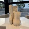 This pair of gently undulating, sculptural vessels brings a contemporary, studio-inspired feel to any surface. The matte, clay-like finish and organic silhouettes make them ideal for console styling, bookshelf vignettes, or minimal tabletop arrangements. Their neutral tone integrates easily with modern, Scandinavian, and California casual interiors.