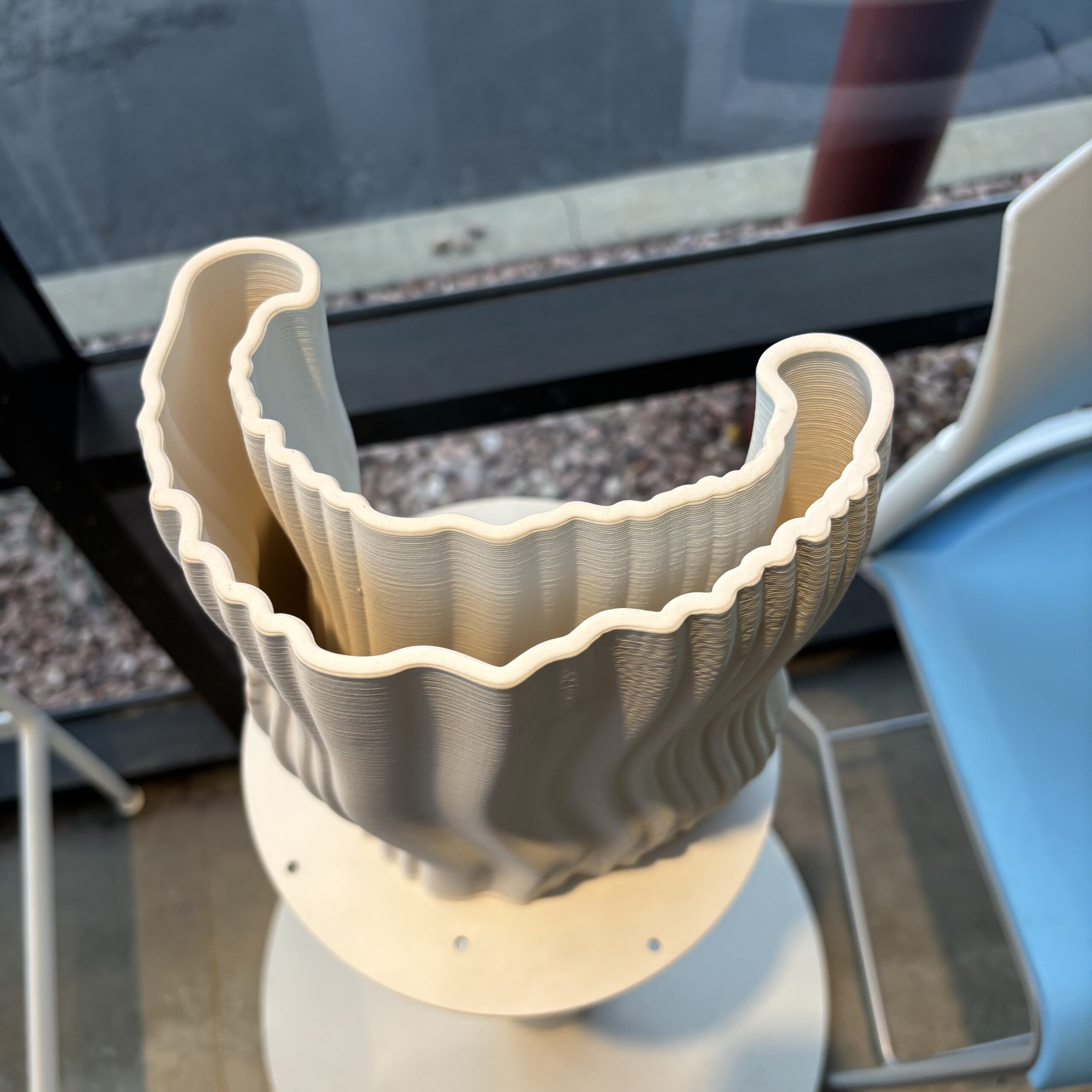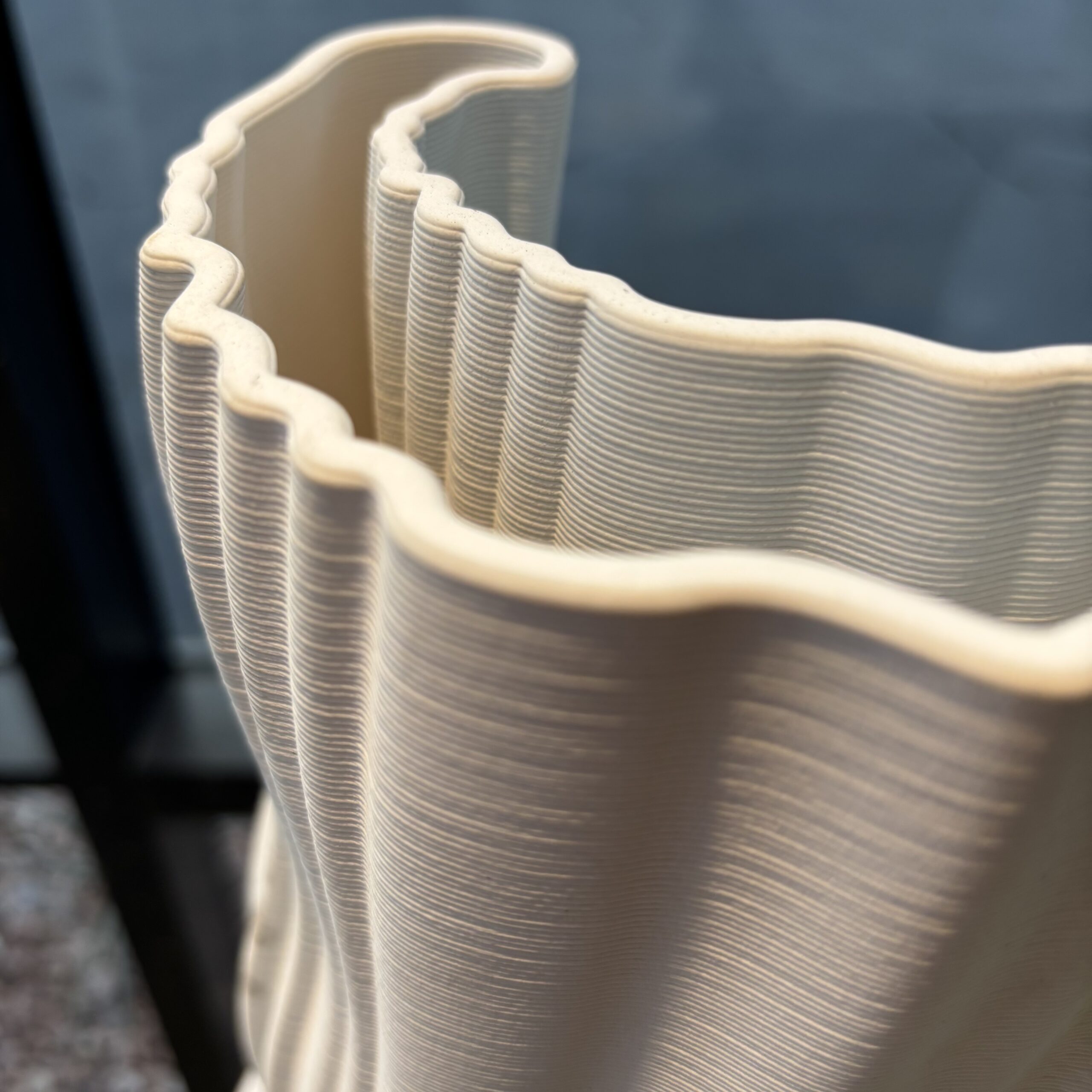 This pair of gently undulating, sculptural vessels brings a contemporary, studio-inspired feel to any surface. The matte, clay-like finish and organic silhouettes make them ideal for console styling, bookshelf vignettes, or minimal tabletop arrangements. Their neutral tone integrates easily with modern, Scandinavian, and California casual interiors.