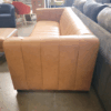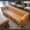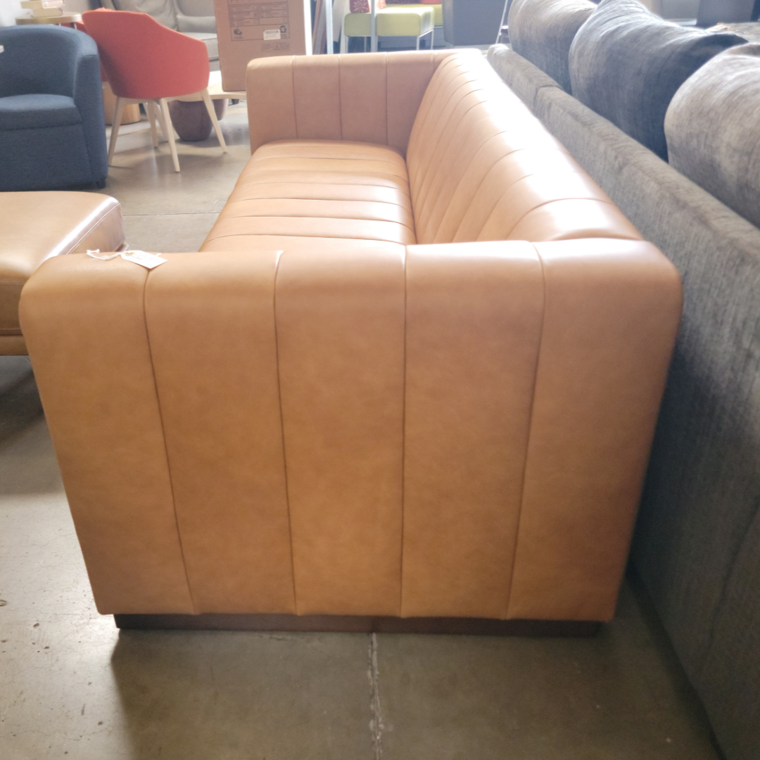 The Poly & Bark Canale 99 inch leather sofa delivers a sculpted channel-tufted bench seat, low-profile shelter arms, and rich Cognac Tan Italian leather that reads warm and modern. This piece is a pristine floor model, unboxed only for display, unused, and showroom clean. The color sits in the sweet spot between camel, caramel, and cognac, an easy neutral that elevates a living room, family room, or loft.