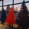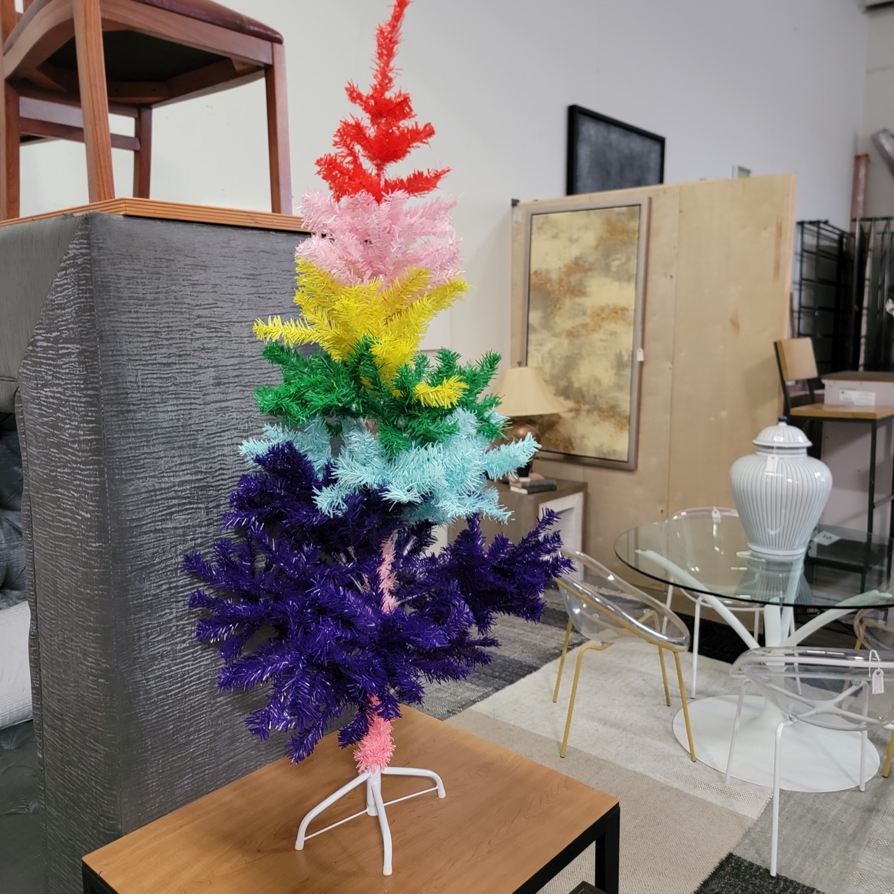 Yes, they are technically an artificial Christmas tree, but the point is bigger than the calendar. Pink reads like a Valentine corner in February. Blue and purple feel cool, moody, and architectural in a minimalist space. Red is instant energy in a storefront or studio. The rainbow one is pure graphic punch, and it photographs fast.