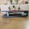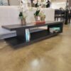 This piece sits low and confident in the room, with long horizontal planes that ground a seating area and give the space visual calm.
