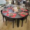 This set is holiday-ready and sized for Thanksgiving dinners, Christmas gatherings, dinner parties, and hosting larger groups with ease. The round layout encourages conversation and gives every guest a comfortable, equal seat at the table. Surfaces and upholstery are in fantastic condition, free from visible damage.