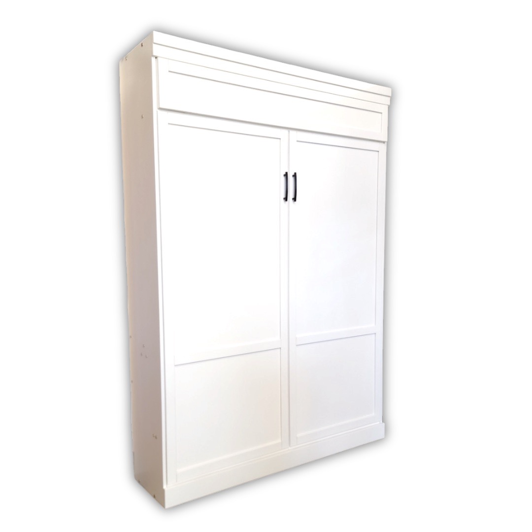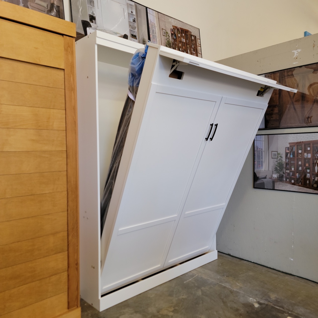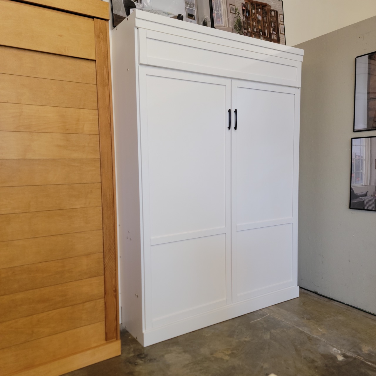 This Ryland is the kind of floor model people wait for, simple, bright, and visually quiet, with a modern panel look that reads clean in person and in photos. In the closed position it presents as a built-in style cabinet. When opened, it becomes a true Queen sleeping setup, fast and straightforward, designed for real daily use in guest rooms, home offices, and multi-use spaces.