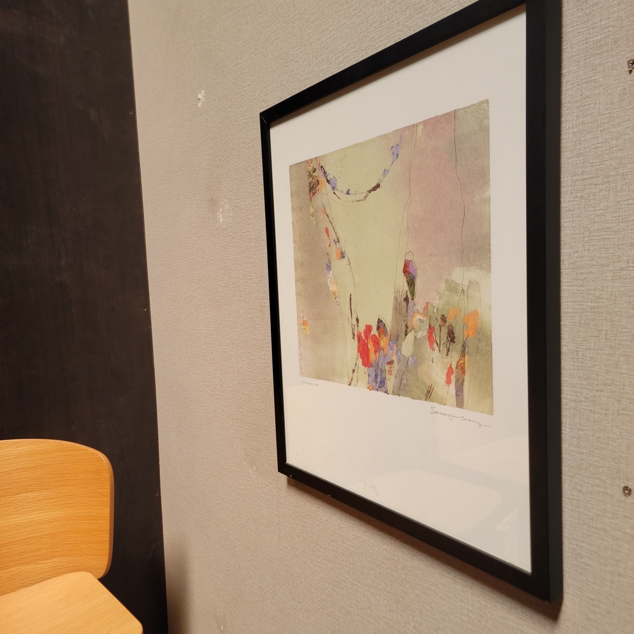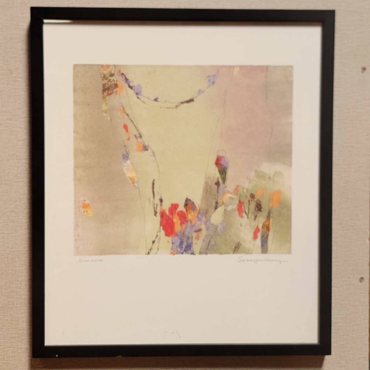 An easy-size piece that works well alone or as part of a larger gallery grouping. Ideal where softer art is needed to warm a room without overpowering it.