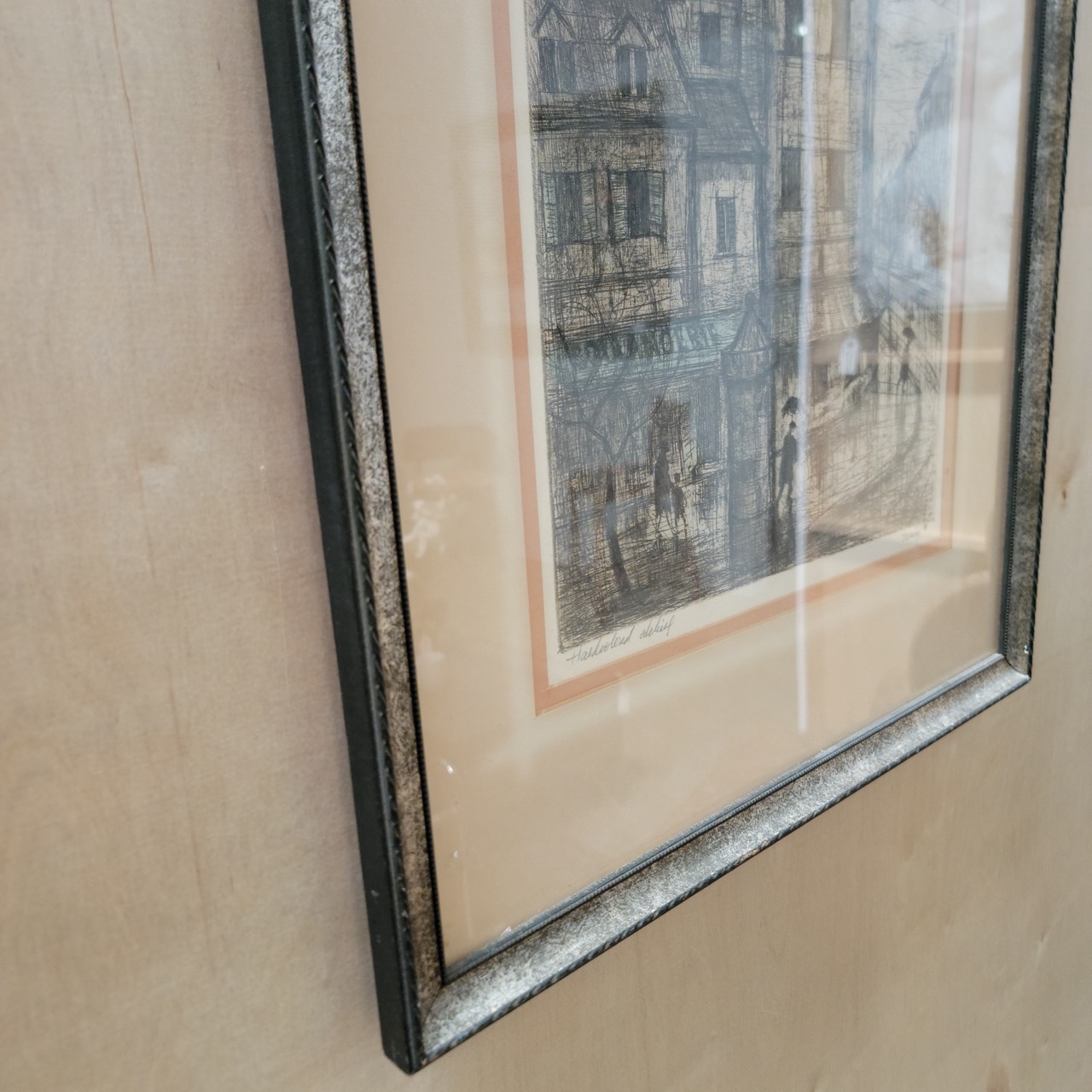 Best suited for a study, hallway, office, bedroom, or layered art wall. Signed in pencil along the lower margin. Artist attribution is not confirmed, so it is being represented simply as a signed European street scene etching.